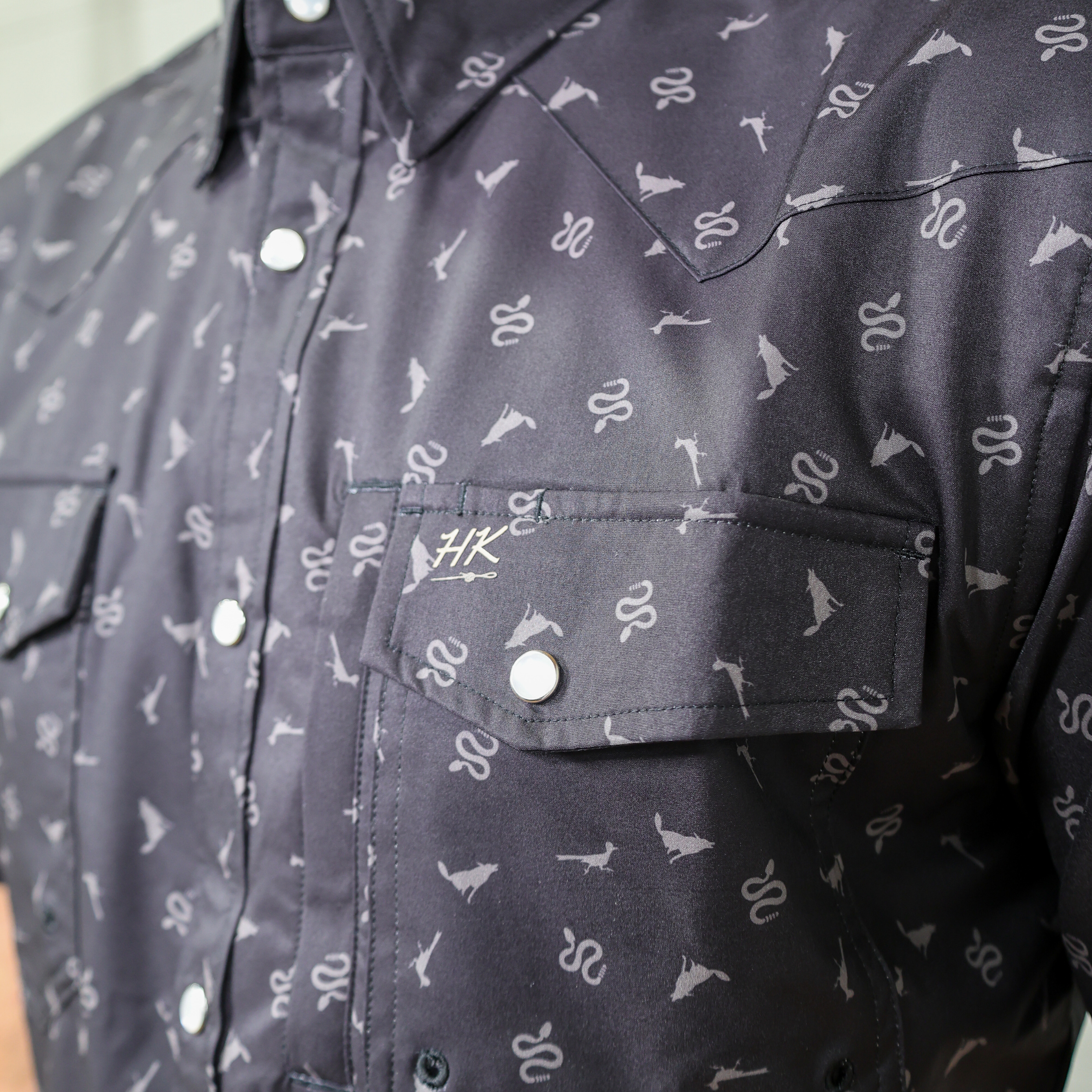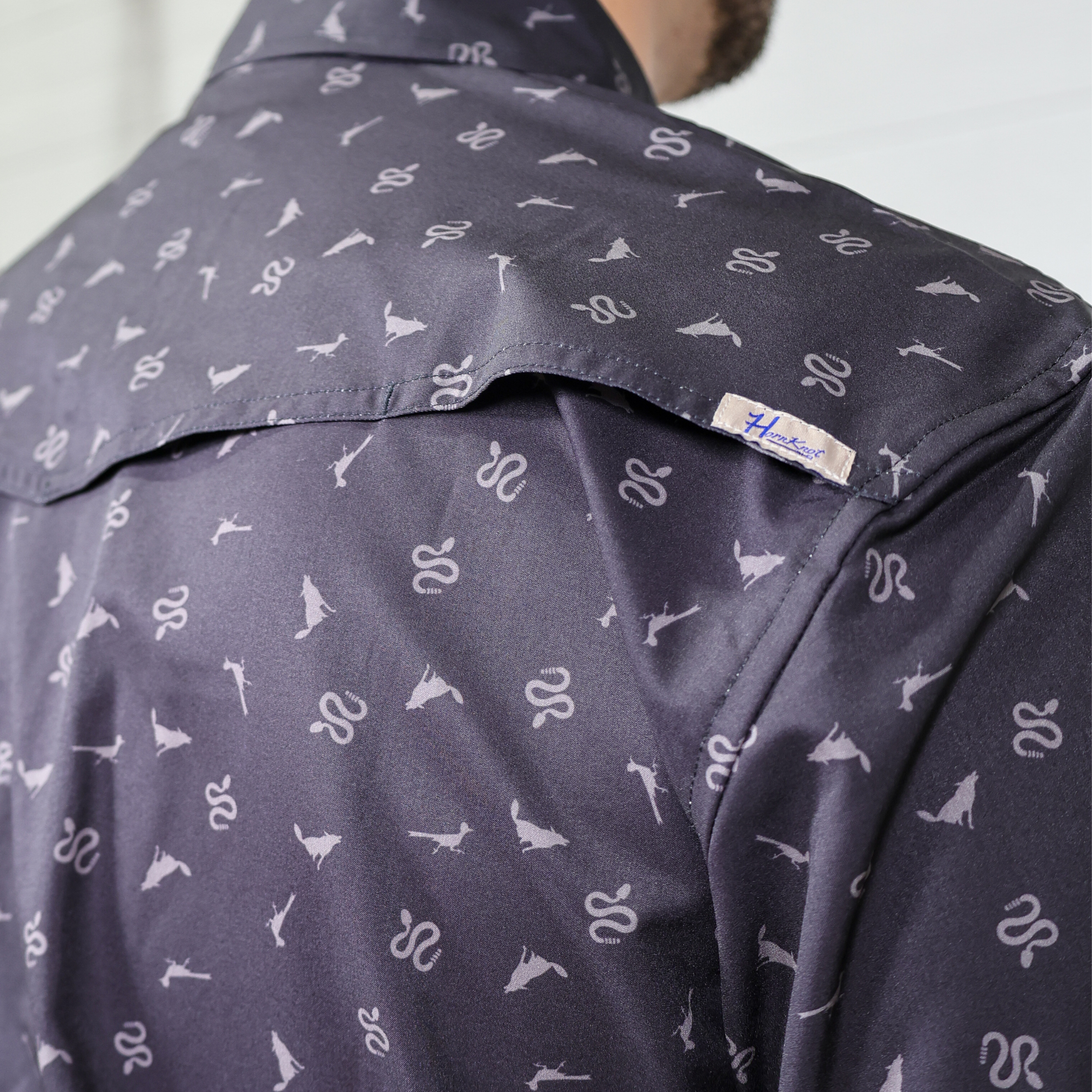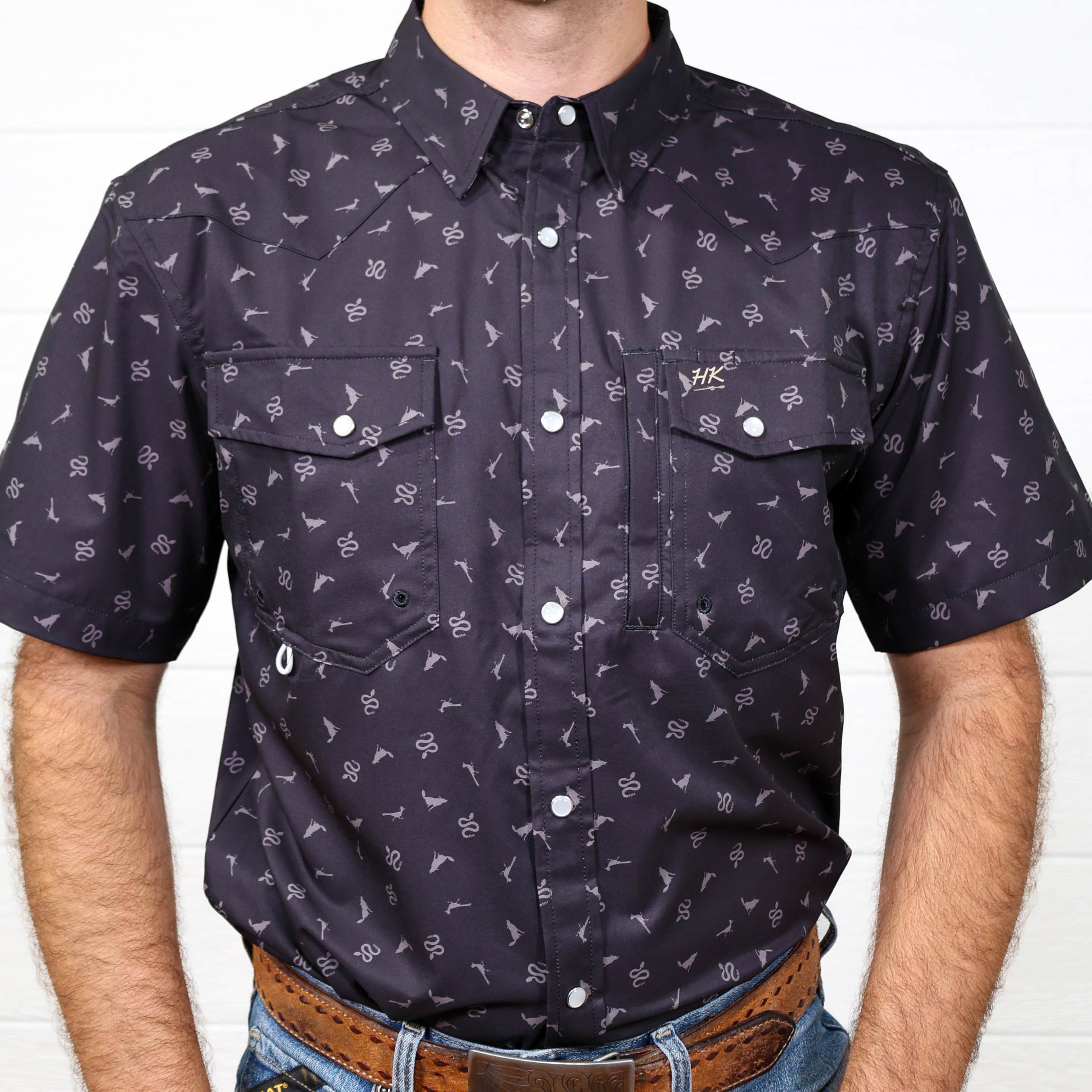 This shirt combines classic Western style with modern functionality, making it perfect for both work and everyday wear. Designed with a Cowboy Fit, it offers a slimmer, tailored silhouette while still allowing freedom of movement thanks to the built-in stretch. The fabric is soft, lightweight, and breathable, ensuring all-day comfort in any condition. Thoughtful features include a lens cloth pocket for cleaning glasses or lenses, a pen holder, and a Traditional Western chest pocket for added convenience and flair. Traditional pearl snaps and a Western yoke complete the look, blending timeless design with practical details for the modern cowboy.