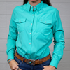 This shirt combines classic western style with modern functionality, making it perfect for both work and everyday wear. Designed with our Women's Fit, it offers a slimmer, tailored silhouette while still allowing freedom of movement thanks to the built-in stretch. The fabric is soft, lightweight, and breathable, ensuring all-day comfort in any condition. Thoughtful features include our patent pending Always within Reach lens cloth pocket for cleaning glasses or lenses, a pen holder, and a chest pocket for added convenience. We even took the design a step further and extending the tail & sleeve length for ultimate mobility when working, riding or roping. At the wrist you will find two pearl snaps for the ability to adjust sleeve size. Traditional pearl snaps and a western vented yoke complete the look, blending timeless design with practical details for the modern cowgirl. From breakaway ropers to equine vets this shirt is sure to become your new favorite performance shirt.