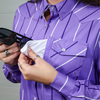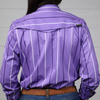 This shirt combines classic western style with modern functionality, making it perfect for both work and everyday wear. Designed with our Women's Fit, it offers a slimmer, tailored silhouette while still allowing freedom of movement thanks to the built-in stretch. The fabric is soft, lightweight, and breathable, ensuring all-day comfort in any condition. Thoughtful features include our patent pending Always within Reach lens cloth pocket for cleaning glasses or lenses, a pen holder, and a chest pocket for added convenience. We even took the design a step further and extending the tail & sleeve length for ultimate mobility when working, riding or roping. At the wrist you will find two pearl snaps for the ability to adjust sleeve size. Traditional pearl snaps and a western vented yoke complete the look, blending timeless design with practical details for the modern cowgirl. From breakaway ropers to equine vets this shirt is sure to become your new favorite performance shirt.