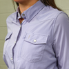 This shirt combines classic western style with modern functionality, making it perfect for both work and everyday wear. Designed with our Women's Fit, it offers a slimmer, tailored silhouette while still allowing freedom of movement thanks to the built-in stretch. The fabric is soft, lightweight, and breathable, ensuring all-day comfort in any condition. Thoughtful features include our patent pending Always within Reach lens cloth pocket for cleaning glasses or lenses, a pen holder, and a chest pocket for added convenience. We even took the design a step further and extending the tail & sleeve length for ultimate mobility when working, riding or roping. At the wrist you will find two pearl snaps for the ability to adjust sleeve size. Traditional pearl snaps and a western vented yoke complete the look, blending timeless design with practical details for the modern cowgirl. From breakaway ropers to equine vets this shirt is sure to become your new favorite performance shirt.
