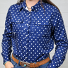 This shirt combines classic Western style with modern functionality, making it perfect for both work and everyday wear. Designed with a Women's Fit, it offers a slimmer, tailored silhouette while still allowing freedom of movement thanks to the built-in stretch. The fabric is soft, lightweight, and breathable, ensuring all-day comfort in any condition. Thoughtful features include a lens cloth pocket for cleaning glasses or lenses, a pen holder, and a slanted chest pocket for added convenience and flair. Traditional pearl snaps and a Western yoke complete the look, blending timeless design with practical details for the modern cowboy.
