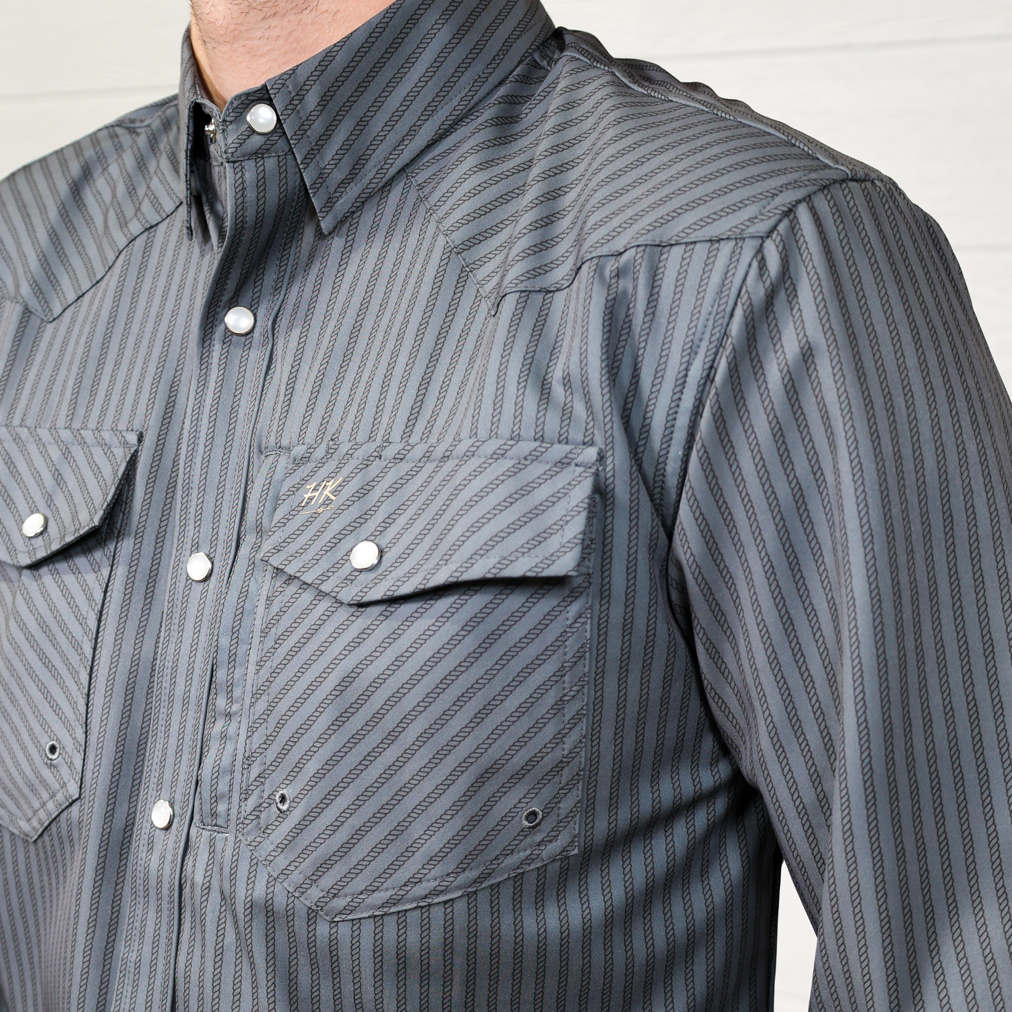This shirt combines classic Western style with modern functionality, making it perfect for both work and everyday wear. Designed with a Cowboy Fit, it offers a slimmer, tailored silhouette while still allowing freedom of movement thanks to the built-in stretch. The fabric is soft, lightweight, and breathable, ensuring all-day comfort in any condition. Thoughtful features include a lens cloth pocket for cleaning glasses or lenses, a pen holder, and a slanted chest pocket for added convenience and flair. Traditional pearl snaps and a Western yoke complete the look, blending timeless design with practical details for the modern cowboy.