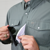 This shirt combines classic Western style with modern functionality, making it perfect for both work and everyday wear. Designed with a Cowboy Fit, it offers a slimmer, tailored silhouette while still allowing freedom of movement thanks to the built-in stretch. The fabric is soft, lightweight, and breathable, ensuring all-day comfort in any condition. Thoughtful features include a lens cloth pocket for cleaning glasses or lenses, a pen holder, and a Traditional Western chest pocket for added convenience and flair. Traditional pearl snaps and a Western yoke complete the look, blending timeless design with practical details for the modern cowboy.